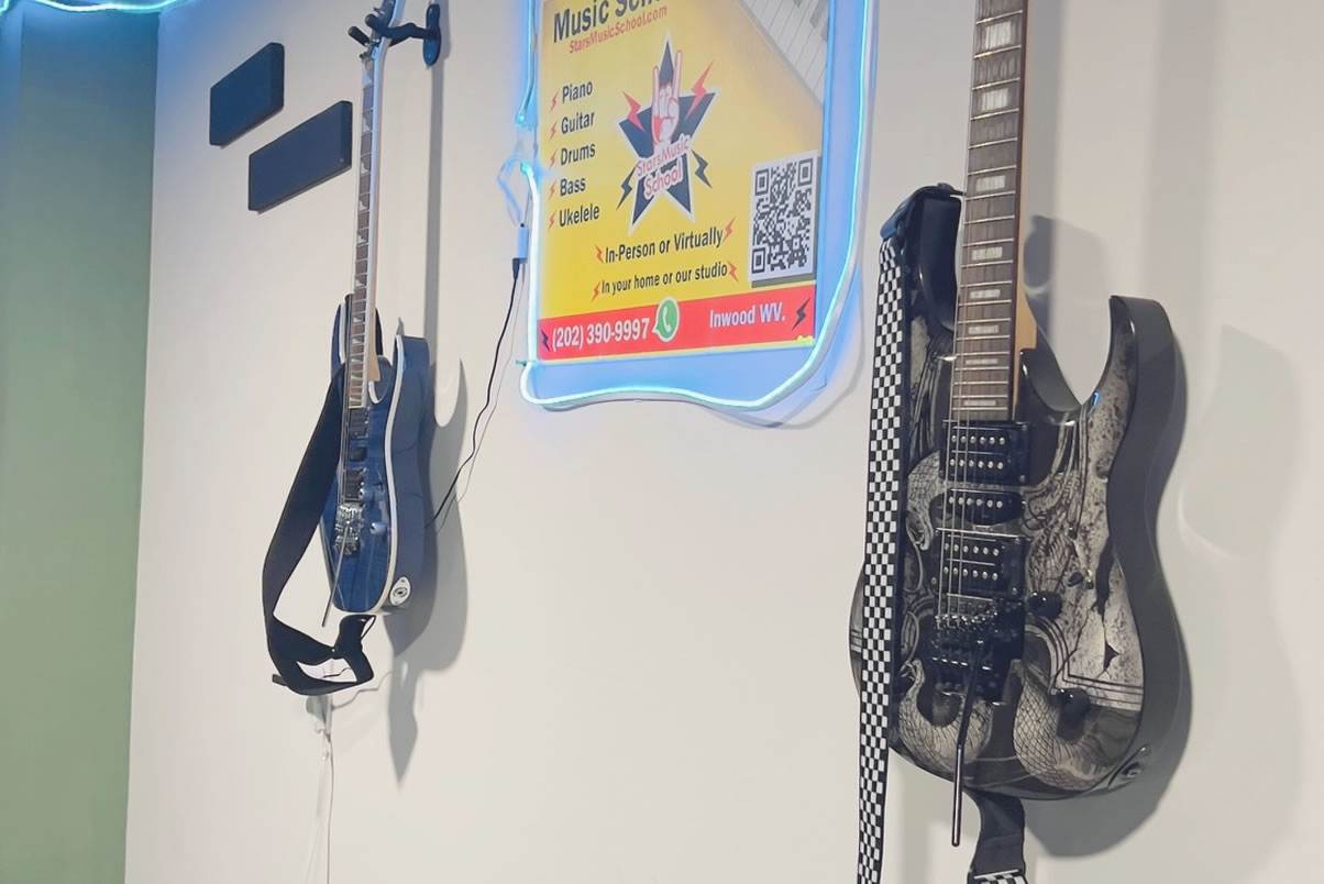 You or your child will learn the first chords, sounds, rhythms, technique, sheet music, tablature, songs, exercises and more.